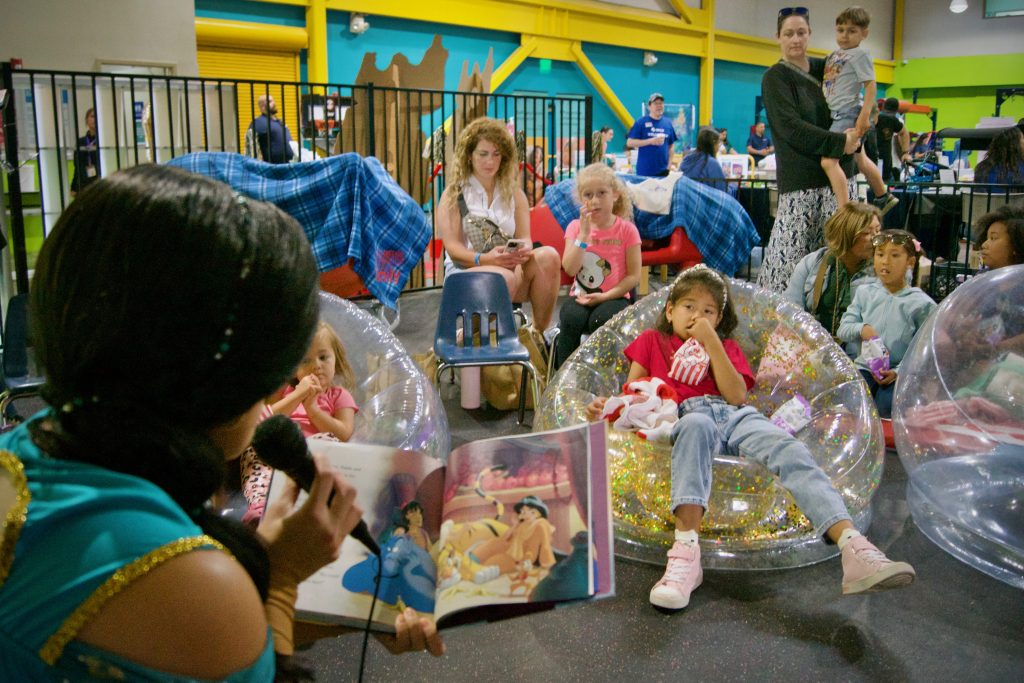 Families enjoyed activities including the SpongeBob Jellyfish Craft, Space Jam Basketball, Moana’s Shell Craft and more. Families also visited the event’s Starry Cinema Movie Area and the Spotlight on Reading station, where children enjoyed photos and storytime with Princess Jasmine.